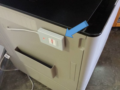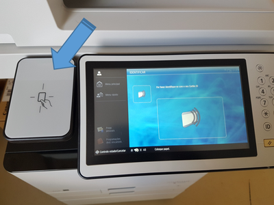 - To retrieve your printing jobs, scan or make copies with the ITQB Card you have to pass it near the card reader in the right side of the display.